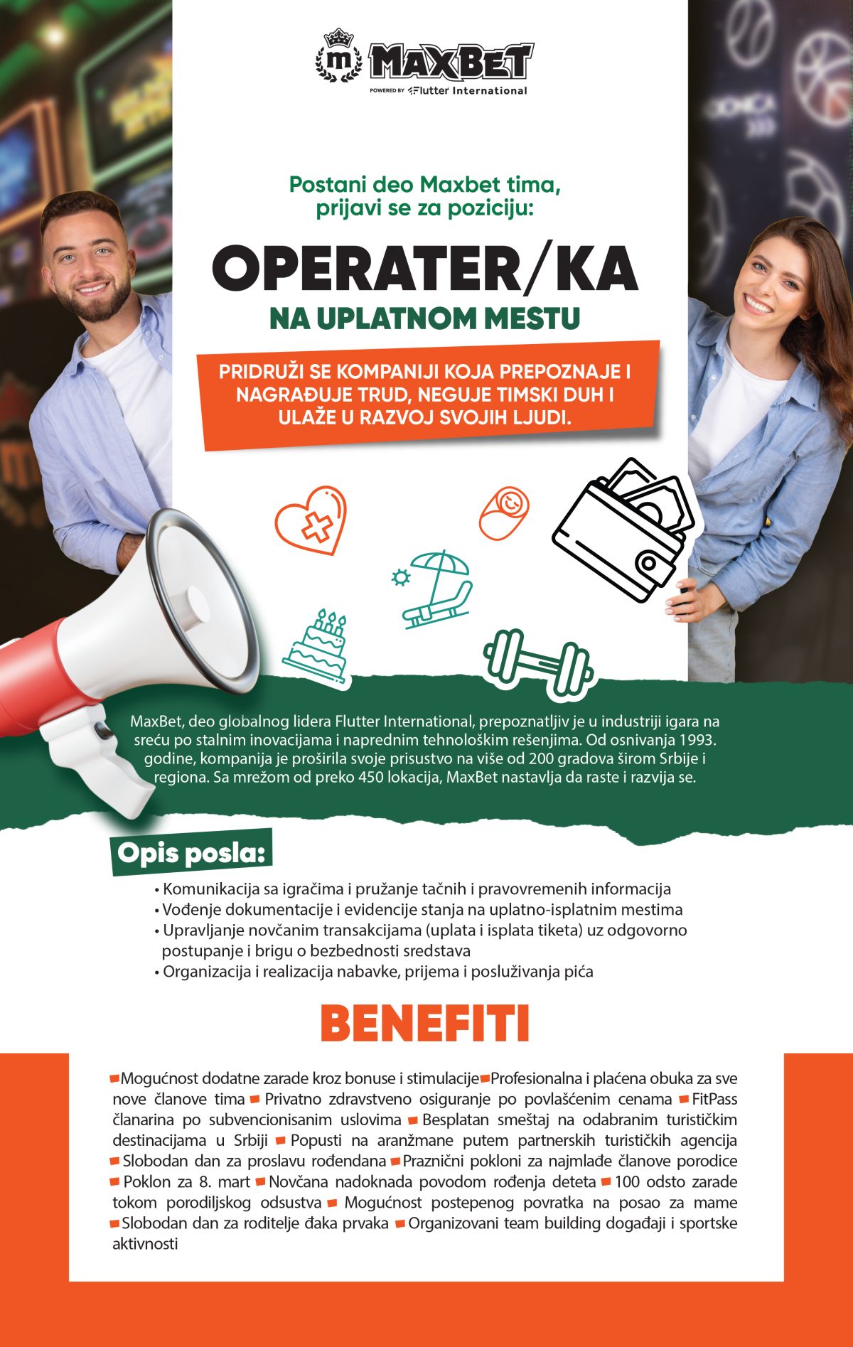 Operater/-ka na uplatnom mestu